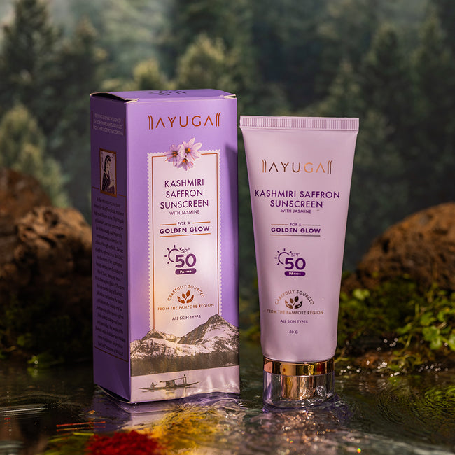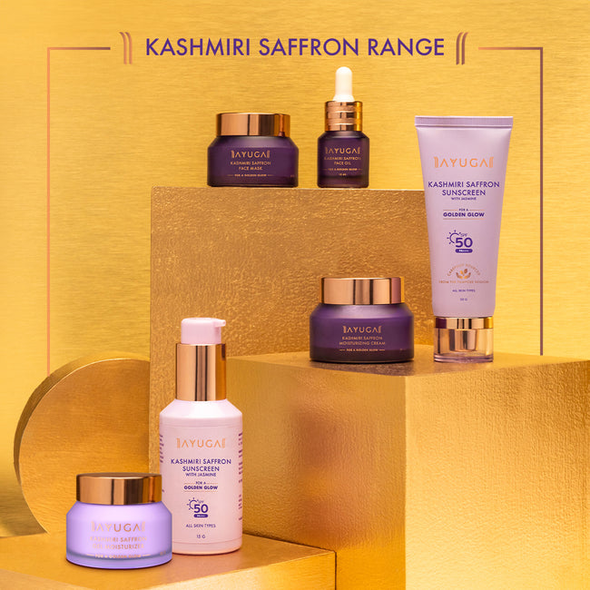 Introducing Ayuga's Kashmiri Saffron Gel Moisturizer – a rich blend of Kashmiri Saffron and Jasmine, meticulously crafted to infuse your skin with a radiant golden glow.